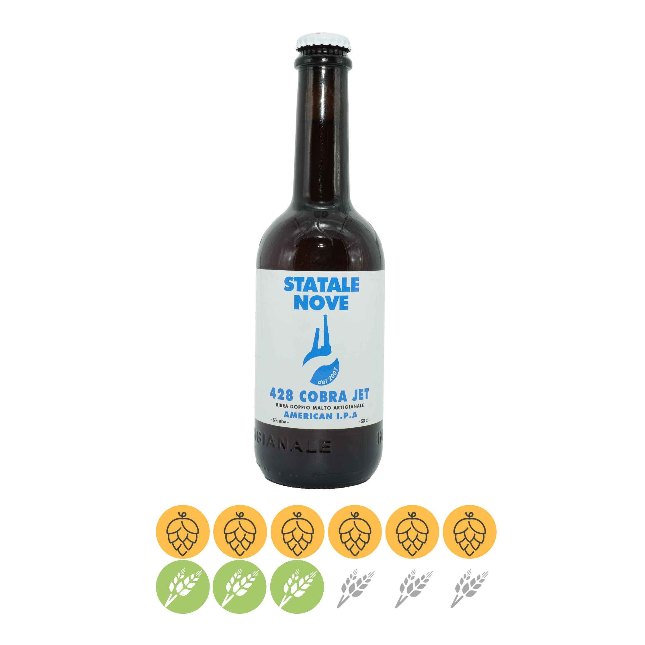 Lista Ingredienti Birra Artigianale 428 Cobra Jet: Acqua, malto d’orzo, luppolo e lievito.