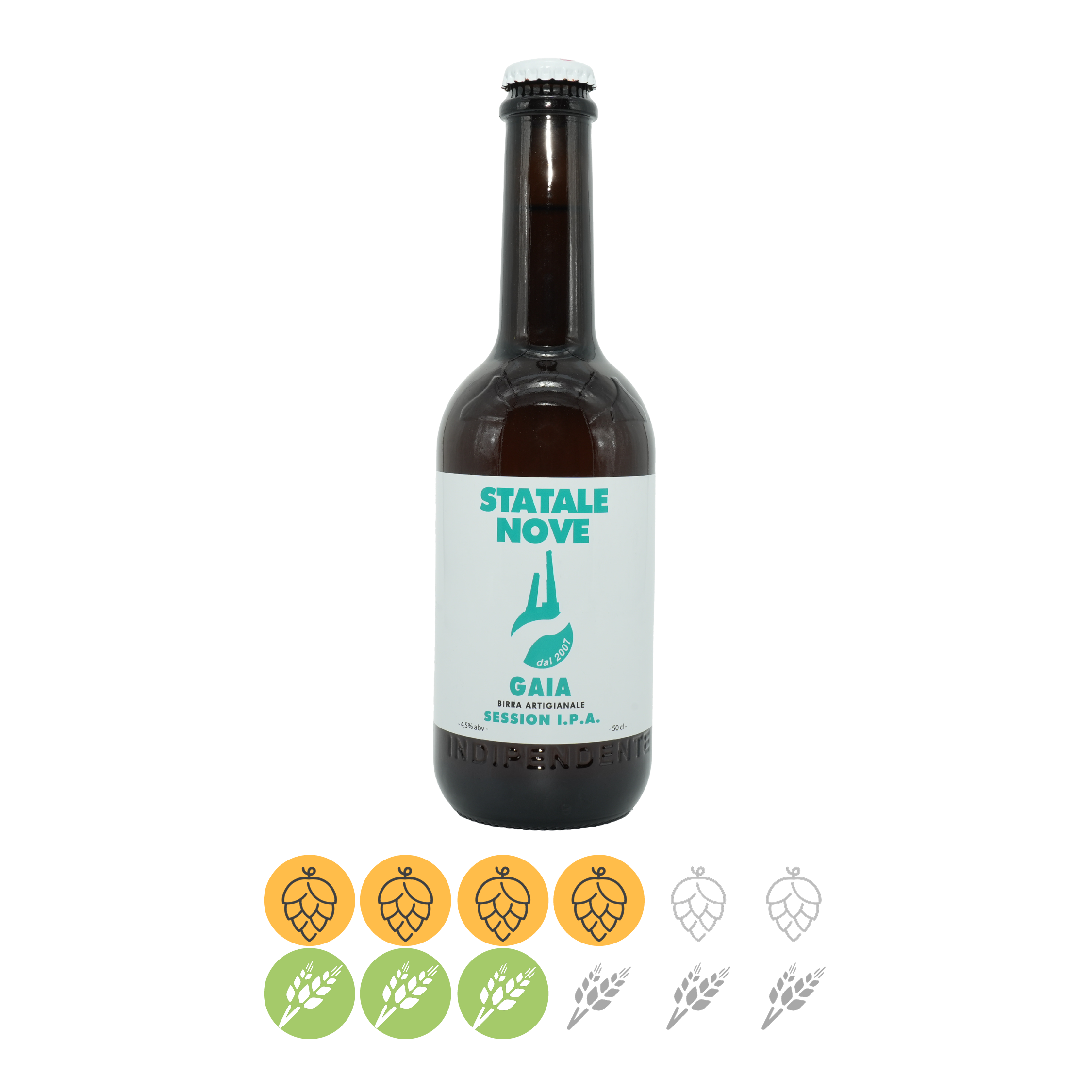 SESSION IPA (EBC: 5 - IBU: 25) - °P 12 - 4,5 % vol. d’alcool - 50 CL