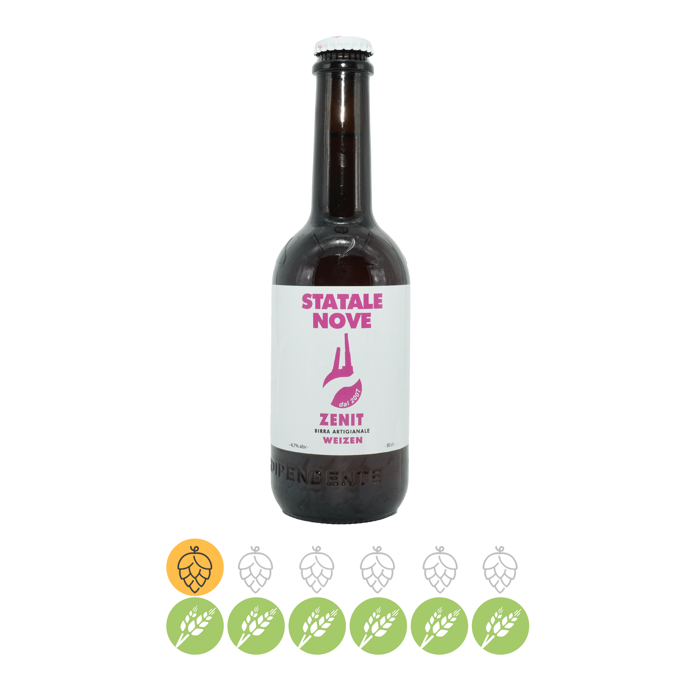 Il profumo della nostra birra artigianale Zenit ad alta fermentazione è caratterizzato da un aroma di banana matura e spezie come il chiodo di garofano dovuto al lievito utilizzato in produzione. Al gusto è fresca e poco amara.